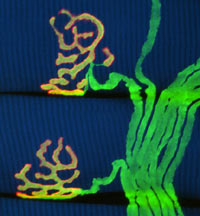 I stumbled across Lichtman’s images in two publications recently. Harvard Magazine features his work, along with five other Harvard scientists, in this month’s feature article, Shedding Light on Life: Advances in Optical Microscopy Reveal Biological Processes as They Unfold. The magazine also provides an online collection of short video clips called Lights! Microscopes! Action! Across the Charles River, MIT’s Technology Review features Lichtman’s work as one of its Ten Emerging Technologies of 2008, complete with an accompanying video featuring Lichtman.