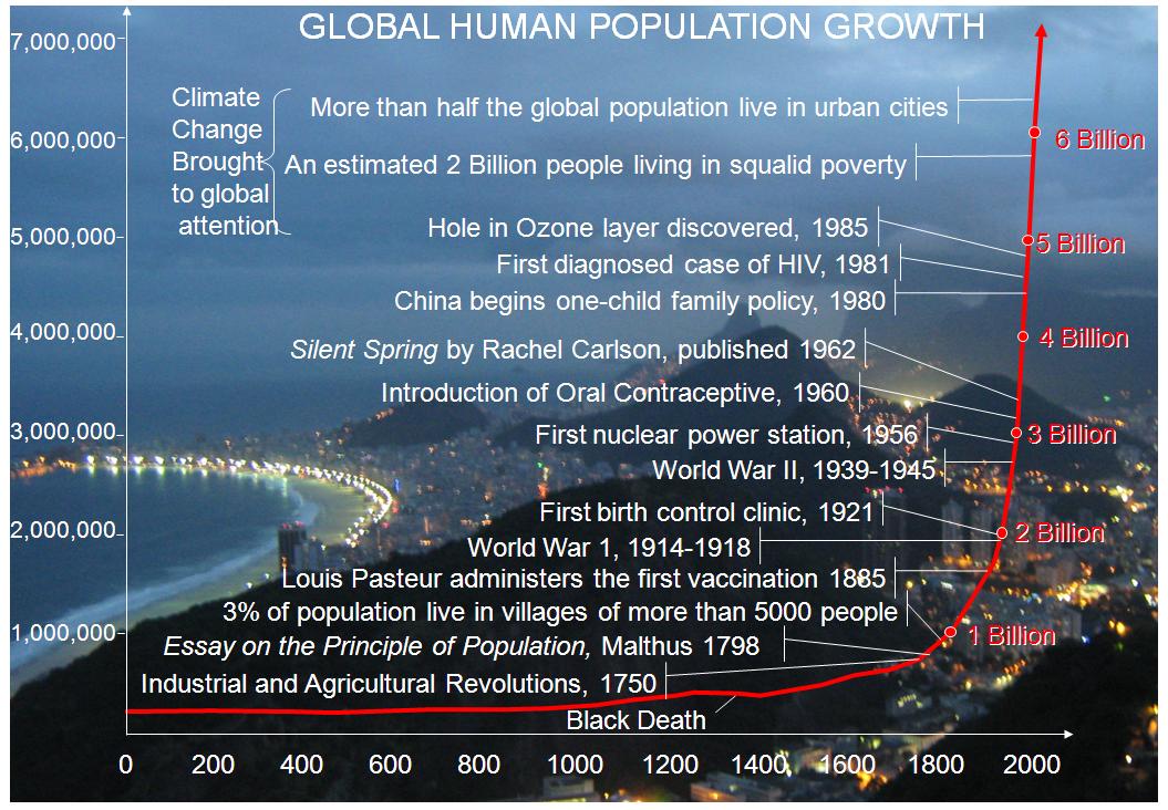 2000 years ago the world population was less than 300 million. By the time of the voyages of Columbus to America, some 1500 years later, the population doubled to approximately 600 million (Diczfalusy 1991). Nobel laureate, Paul Crutzen, recently proposed that in the latter half of the 18th century the world could be said to have entered a new geological epoch which we should call the Anthropocene since that was when human activities spurred on by the Industrial Revolution, began to dominate all the ecosystems on earth (Crutzen & Stoermer 2000). It was only after the industrial and agricultural revolutions that the world population reached 1 billion, doubling by 1927 to 2 billion, and then taking only 50 years to double again (Diczfalusy 1991). In the last 100 years alone, the world population has quadrupled.