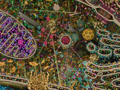 Photo: Most detailed model of a human cell to date, obtained using x-ray, NMR and cryoelectron microscopy datasets. For more photos and info, see here.